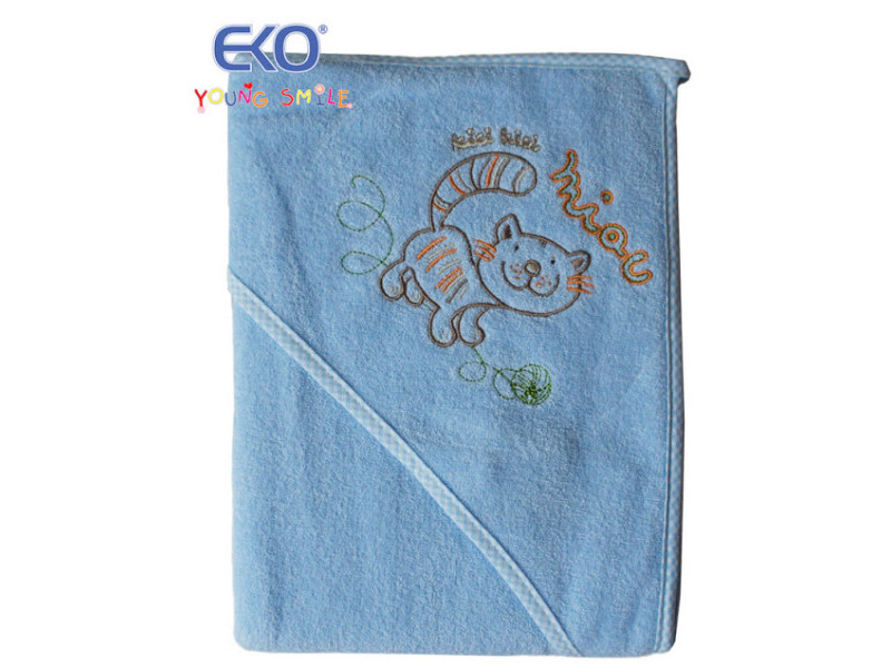 дитяче мачрове полотенце на кнопках Полотенце на кнопках Котик EKO OK-05 голубе