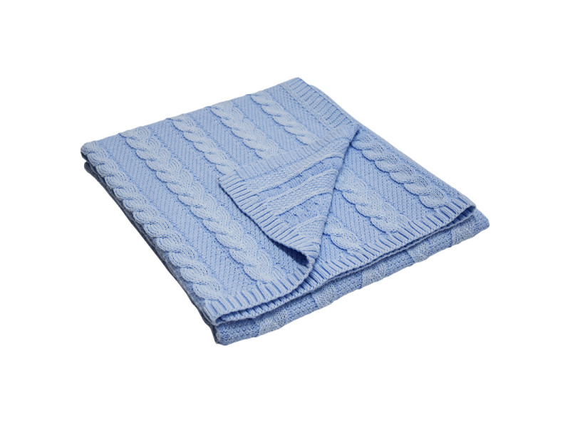 Дитячий теплий в’язаний плед 120×100 см “Косички” PLE-27, блакитний